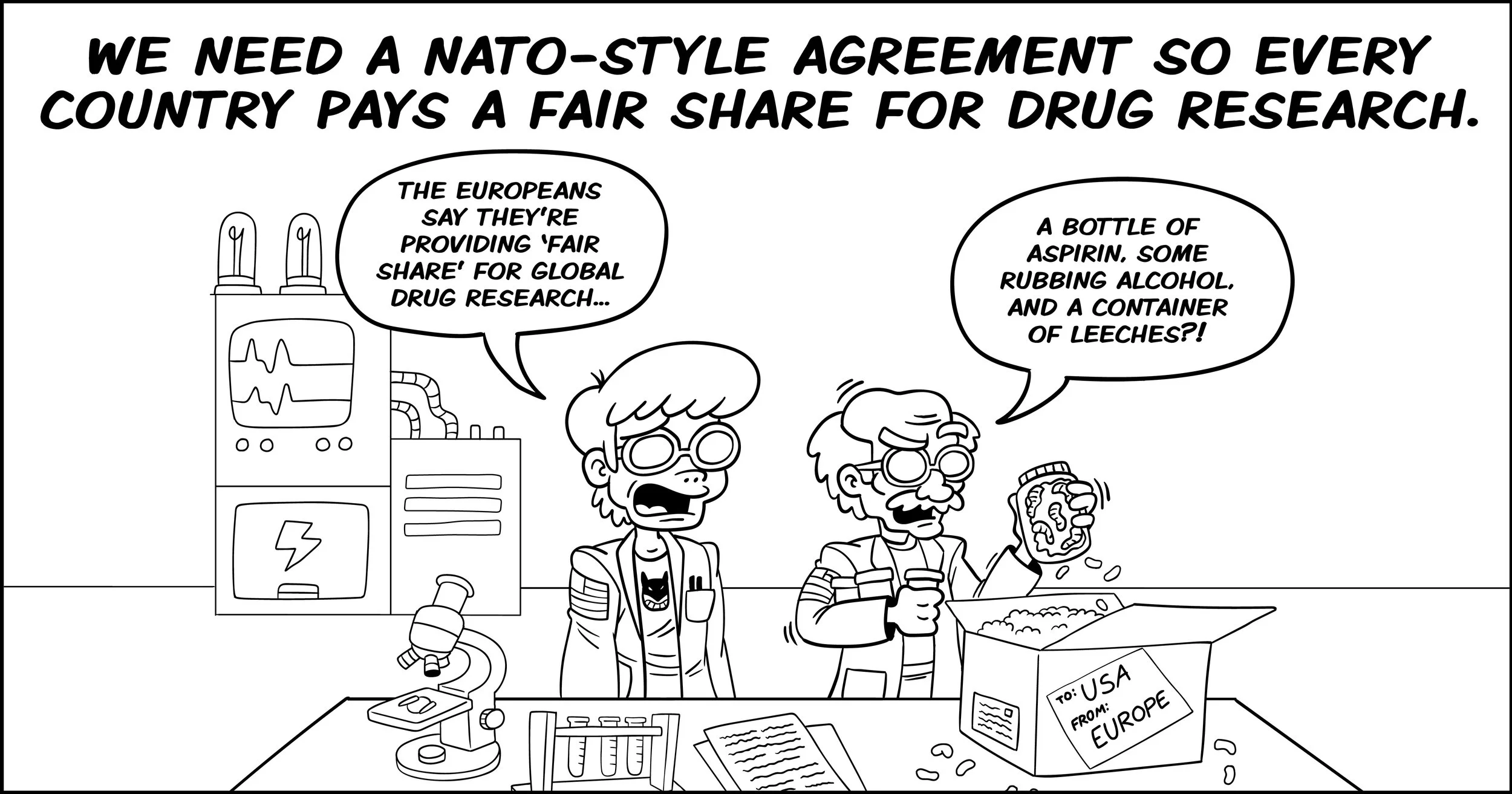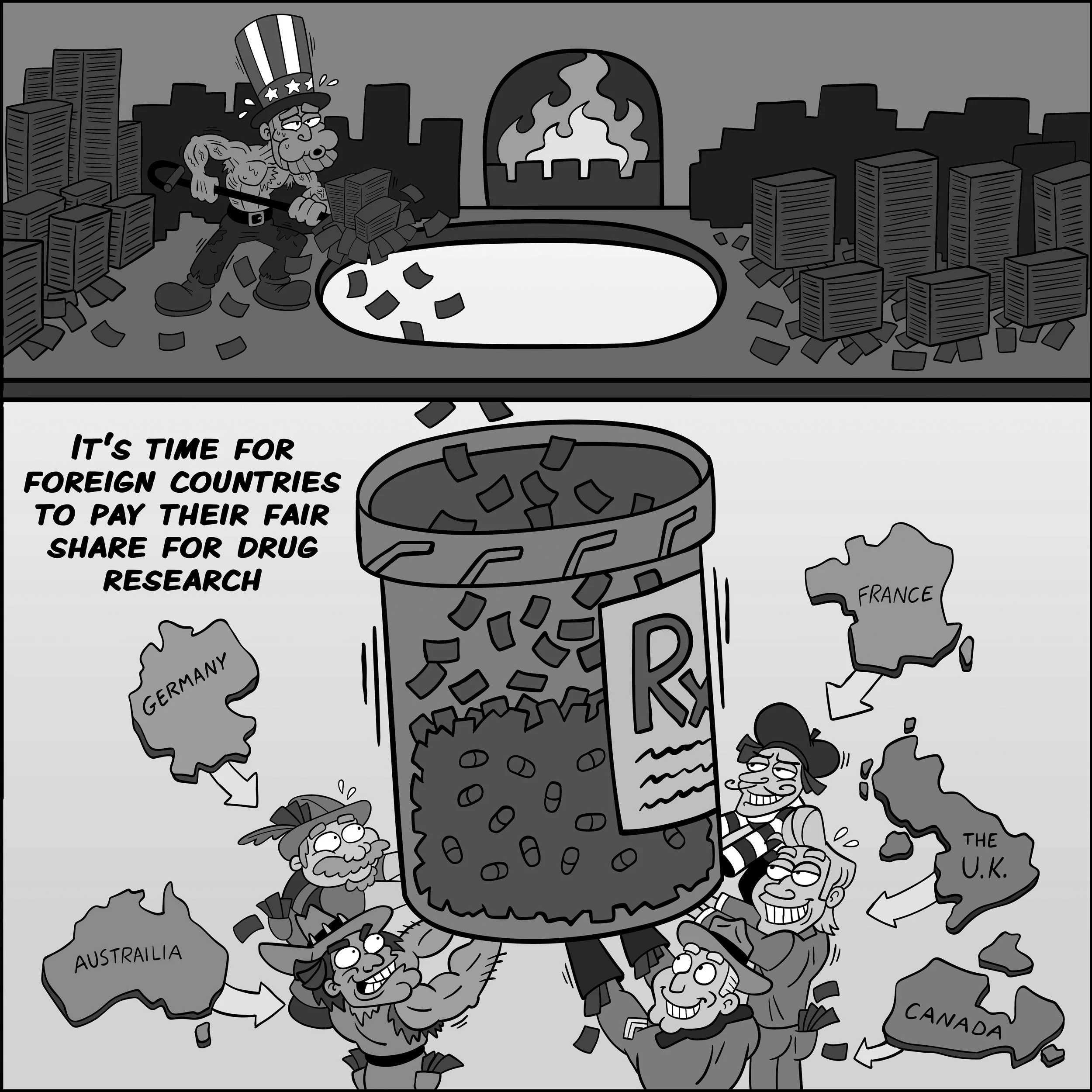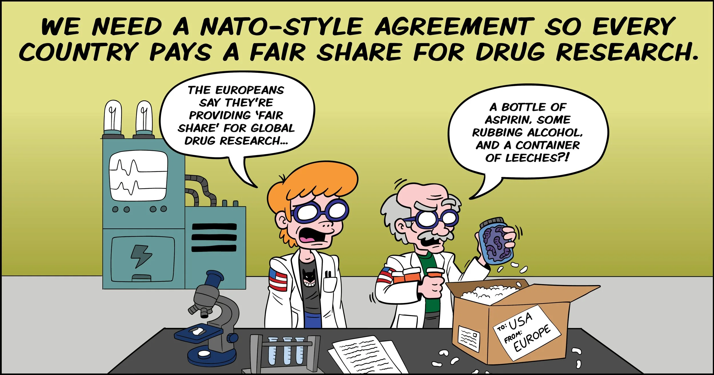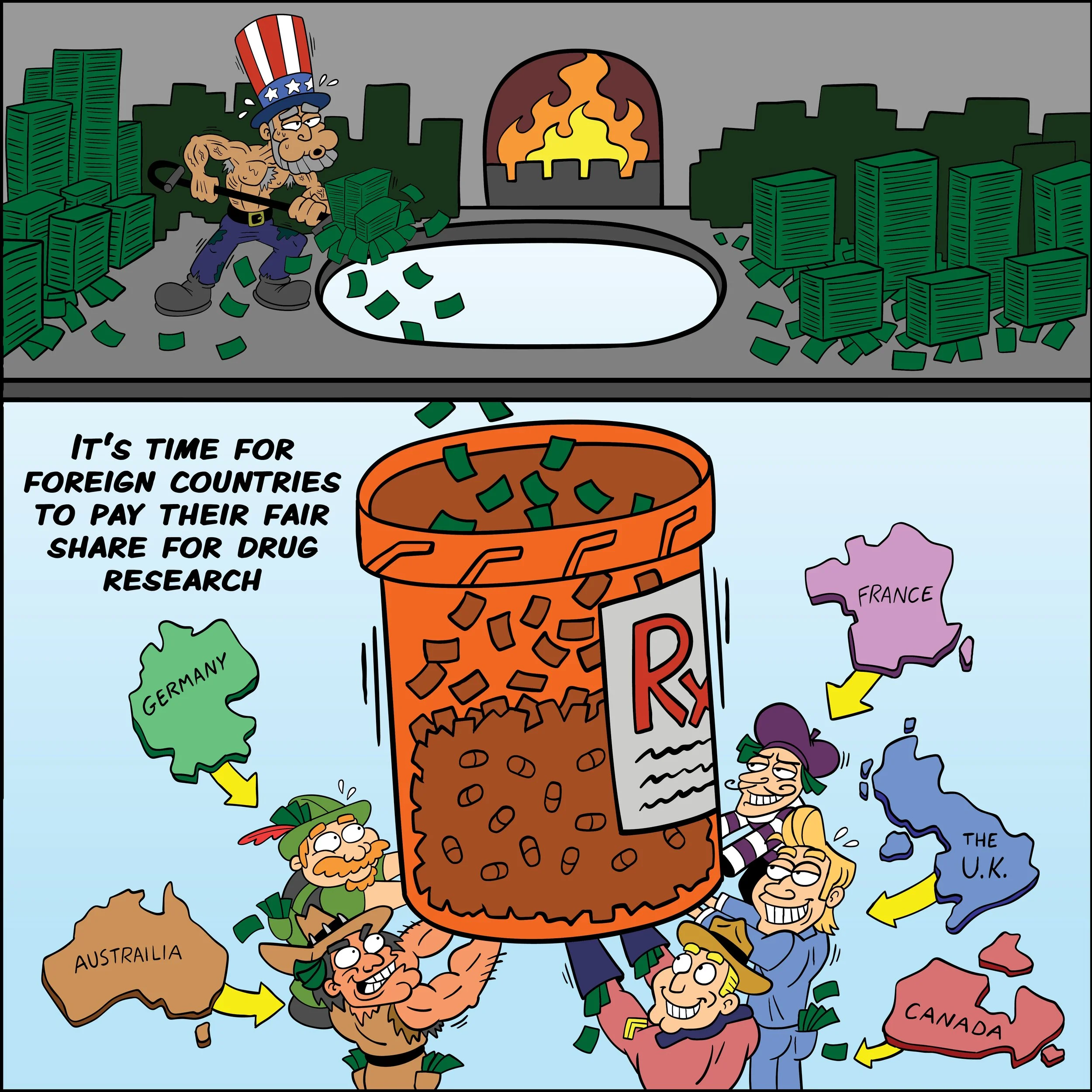 On a global scale, the United States has a bunch of freeloading friends when it comes to paying for prescription drugs: Canada, Germany, France, the U.K., and others. Foreign governments routinely enforce low drug prices in their countries, while expecting U.S. patients and taxpayers to underwrite the costs of research, development, and commercialization.
